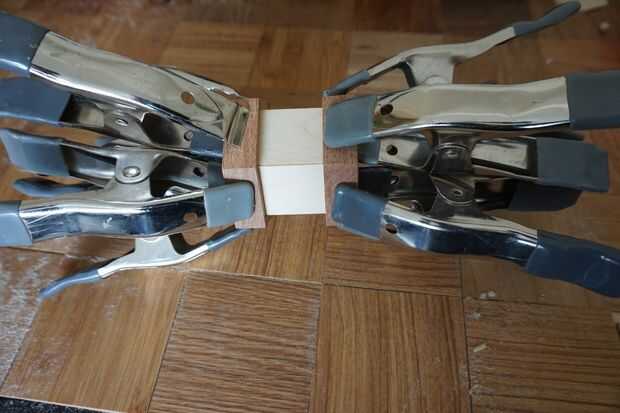 Preparé el interior paredes en mucho la misma manera que los de fuera, sólo que bisela los bordes cuando estaba listo para pegarlas. Usé un bloque de lijado, en lugar de una lijadora de banda para estas pequeñas piezas. Tuvieron que calcen bien.