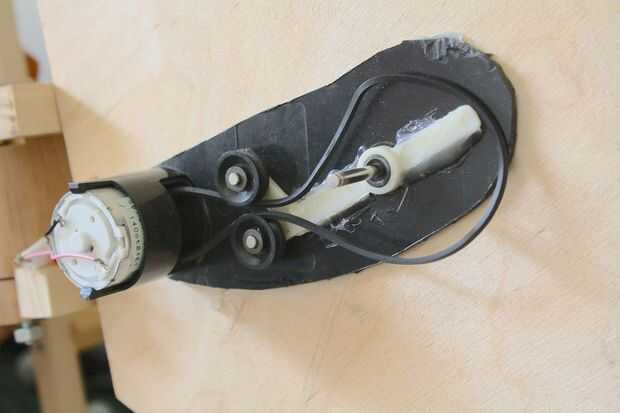 -La selección tenía una tendencia a obtener detenido por las cuerdas. Los problemas eran que el cinturón no estaba recibiendo suficiente tensión, y la selección fue demasiado firmemente unida al brazo. Los dedos de un guitarrista tienen dar más que mi construcción dio la selección. Liquidación para resolver estos problemas mediante la adición de poleas de tensión para el sistema de cinturones y agregar suavemente flexible amarra entre el brazo y escoger. Usted podría notar en el video que hay un ligero desnivel para el giro del brazo. Estas modificaciones fija.