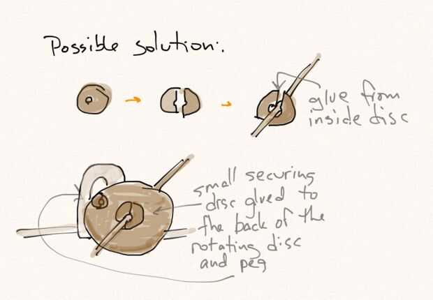 -Piezas de los mecanismos mantienen deslizándose de sus puntos en tacos. Había pegado, pero necesitaban cierta estabilización adicional, que resolví haciendo discos podría cortar por la mitad y vuelva a colocar con suficiente pegamento contra el pasador y tambaleante pieza en cuestión.
