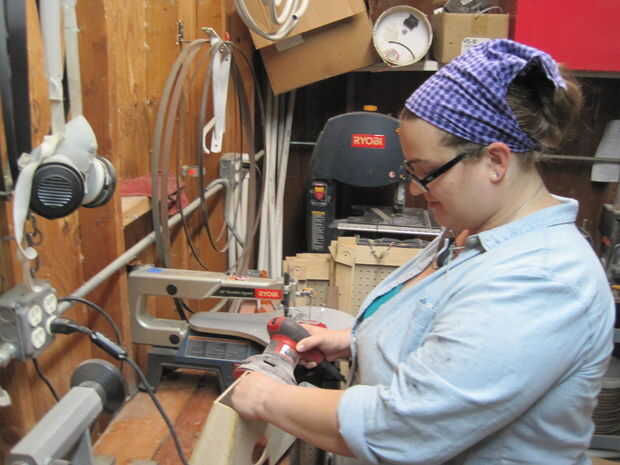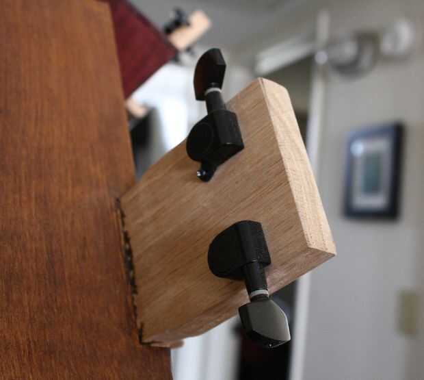 Detalles adicionales vinieron después del proceso de tinción, como la adición de las bisagras, tallada tuerca y silla de montar (ver fotos de estas), ajuste las clavijas y cuerdas.