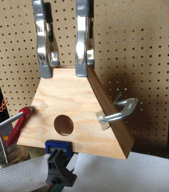 Las cámaras de sonido fueron creadas lo fueron gracias a la consulta con otro miembro de Crash, Theron, que había construido ukeleles en el pasado y fue capaz de que me ayude a afinar el diseño (ningún retruécano previsto). Hay un bloque de madera que se pega dentro y proporciona soporte para el cuello. Sin esto, nunca habría sido capaz de manejar la presión de las cuerdas del cuello. Ver fotos.