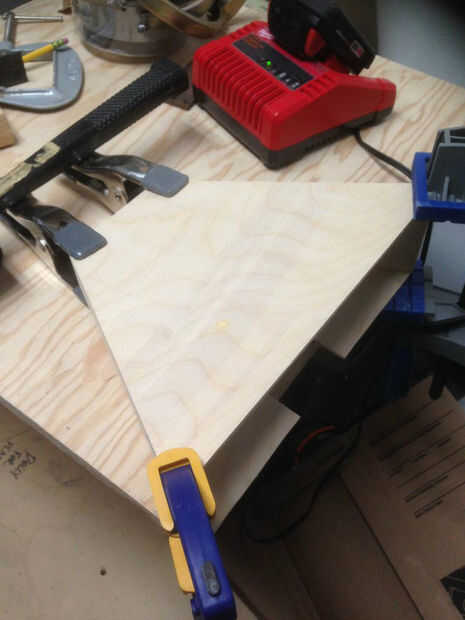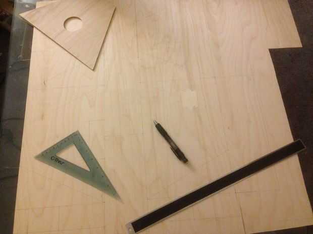Puso a punto el diseño a través de diferentes versiones, usando la madera cada vez más agradable para cada uno. Mi primera madera contrachapada cosas muy áspero de Home Depot, una próxima versión utiliza una capa más delgada y más alta calidad de Rockler en Pasadena, y por el tiempo que había estado a través de dos versiones, fue muy claro en mi diseño podría pasar a una madera de 3 capas de abedul todos de Casa de madera. Vino en una hoja enorme que tuvo que cortarse para encajar en mi coche.