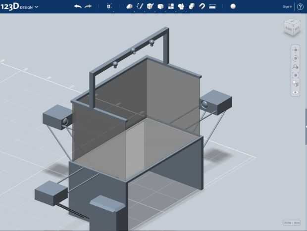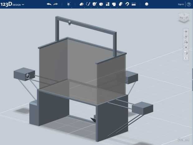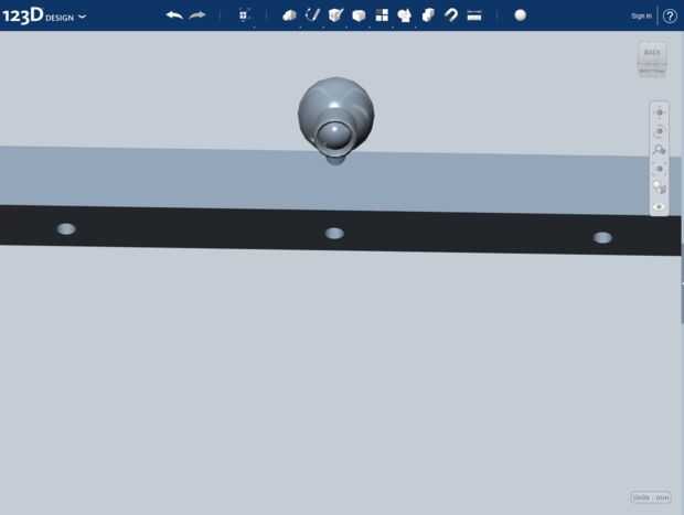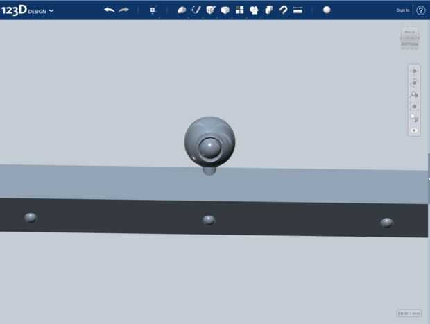 Una vez que la cámara, me mudé a su posición sobre el lado izquierdo de la viga sobre el Holospace. Luego copiarla y poner el duplicado en el lado derecho. También puse uno en el centro, en ángulo, para seguimiento de cabeza. La siguiente parte es que los LEDs. Están hechas de un cilindro coronado con una esfera, que copié en tres puntos a lo largo de la viga y una extra para más adelante, para el lado. Luego utilicé los tres LEDs en la viga para cortar hacia fuera los agujeros para los LEDs con la cosechadora -> restar herramienta. Entonces tomé el extra, lo redujo un poco e hizo tres copias para tapar los agujeros, completando los LEDs.