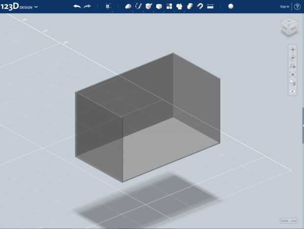 El primer paso para hacer esto en el 123d es crear la caja de cristal que se proyectará en. Me hice con cuatro cubos pegados, pero no usé la cosechadora -> herramienta join todavía, y verá por qué en el siguiente paso.