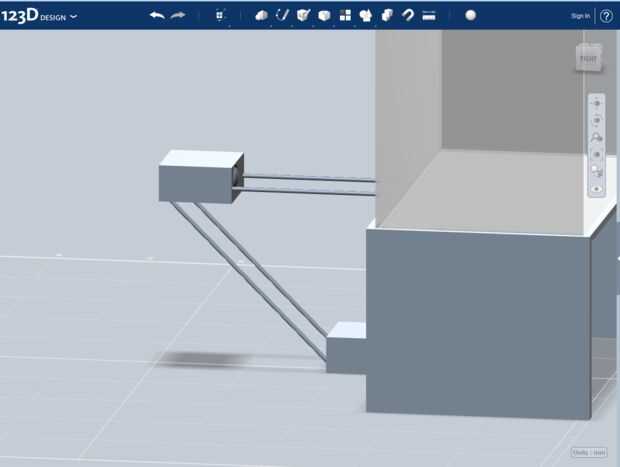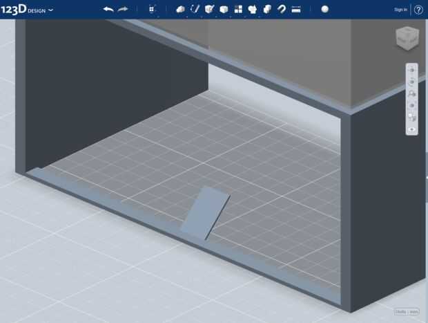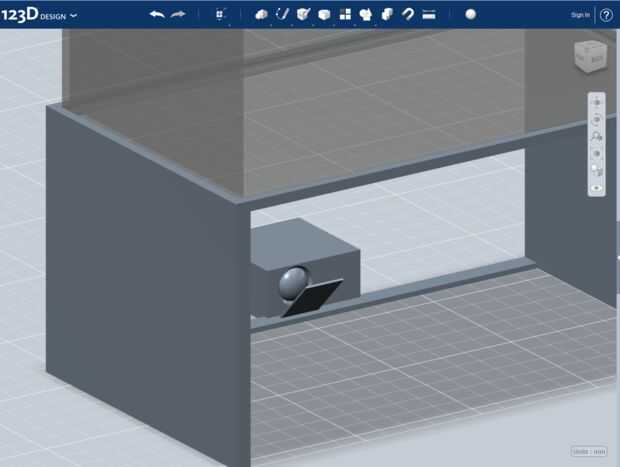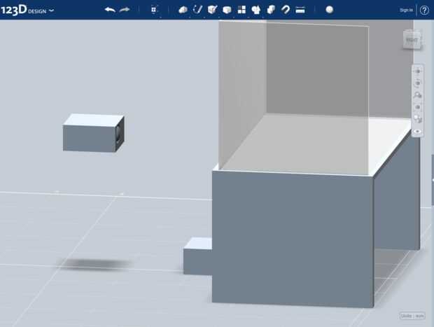 Ahora llegamos a colocar los proyectores alrededor de la base! En primer lugar, añadí un cubo, lo escala y luego lo resbaló entre los lados de la base. I luego hizo otro cubo, escala y lo gira y había colocado en posición como el espejo para el proyector más baja. Después colocar el proyector justo delante del espejo y luego duplicarlo y posicionado a proyectar sobre el panel posterior. Sólo usé unos cilindros que rotado y escalado para crear soportes para el nuevo proyector.