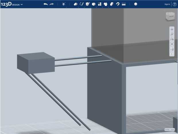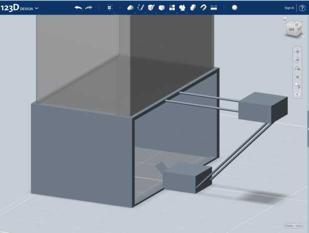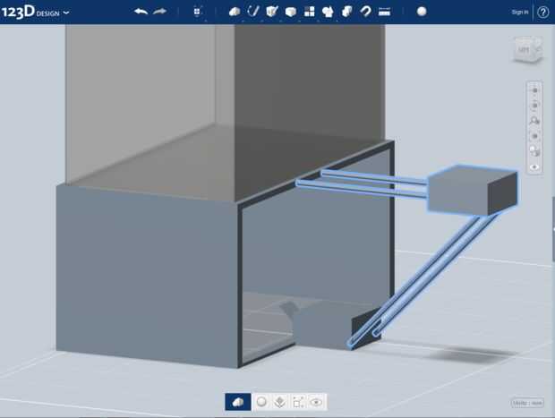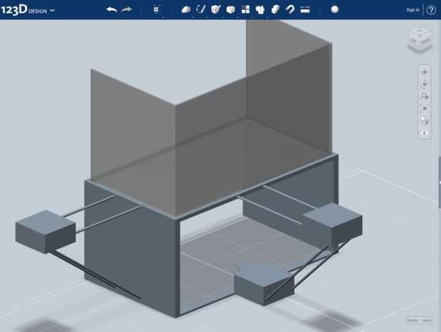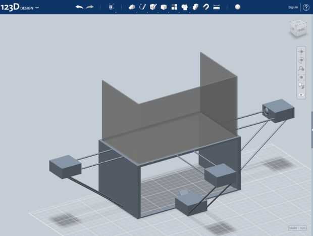 Para finalizar la estructura, la caja seleccionada el proyector y sus soportes y lo duplica. Luego girarlo y trasladó a proyectar sobre un lado del vidrio. Después de eso, ajustado los soportes para conectar a la base.