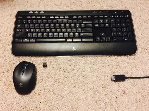 Utilizamos un teclado inalámbrico de Logitech y ratón con un solo conector USB.