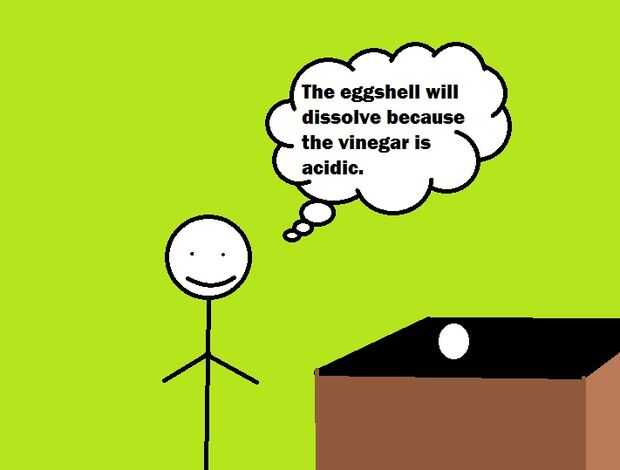 Ahora es el momento para predecir lo que ocurrirá en el experimento. Asegúrese de no utilizar "Creo" en tu hipótesis. Una hipótesis de ejemplo es: cuando se sumerge un huevo en vinagre, la cáscara será comida lejos.