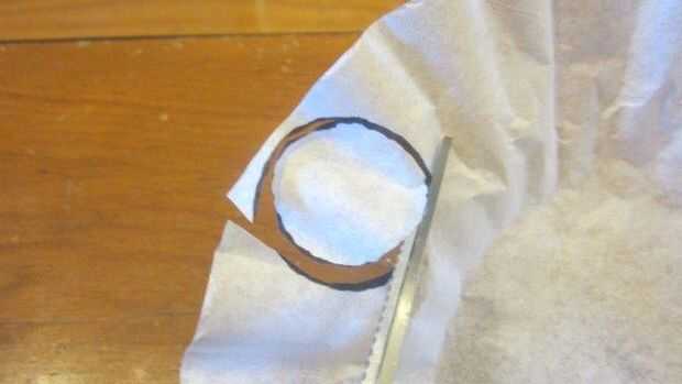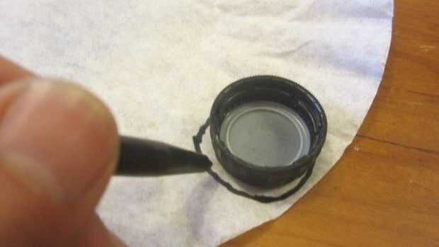Con la tapa y el lápiz, dibuja un círculo, cortar el círculo con las tijeras y pegue a la cáscara de huevo para sellar la parte inferior.