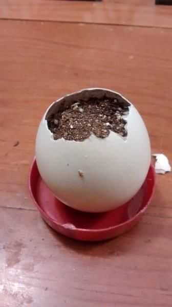 Romper la parte puntiaguda del huevo, tomar los pequeños pedazos de la cáscara del huevo con los dedos para hacer un 1" agujero ø, chorro agua dos o tres veces al día. Antes de que las semillas germinan mantener la cáscara de huevo de la luz del sol en un lugar cálido. Después de la germinación, mantener en una zona donde la luz del sol es presentar al menos 4 horas al día. El período de germinación y tamaño creciente depende de la planta que decida utilizar. Utilice siempre las plantas de pequeño tamaño. Si la planta crece más de 6" altura entonces el trasplante el huevo a maceta más grande, colocar el huevo en la olla de nuevo y romper la cáscara del huevo para permitir que las raíces para crecer libremente.