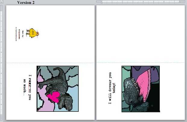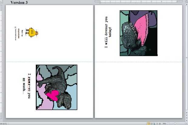 Dirección URL del doc con la actualización de la orientación de la página: San Valentín "me rawr-ve usted" tarjeta V3