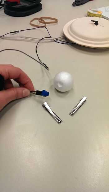 4. Asegure una bola de espuma de poliestireno a la perilla del potenciómetro de control más fácil.