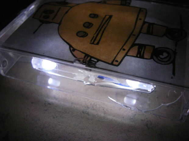 El imán de nevera de marco de foto iluminada LED se hace de un mini contenedor de cinta DV, por lo que es verde.