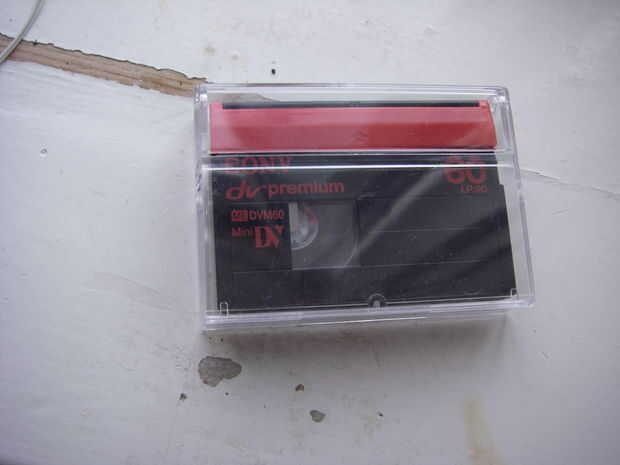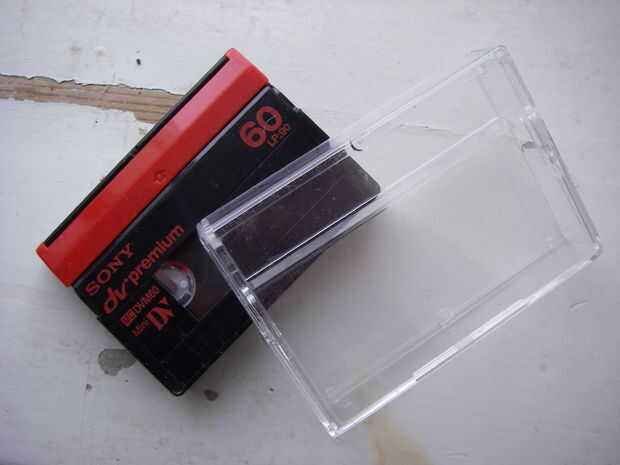 Un recipiente vacío de mini DV cinta.