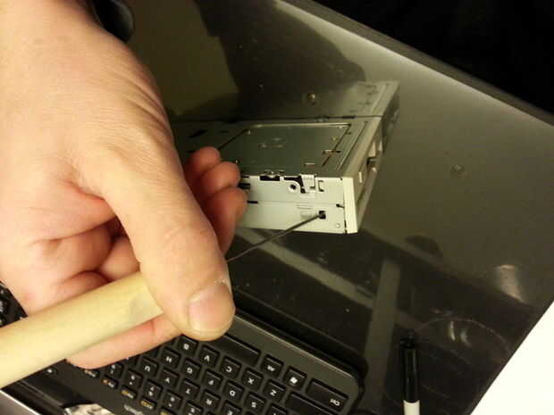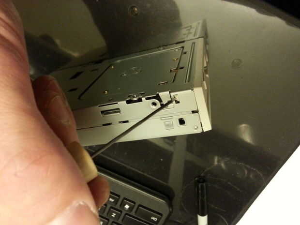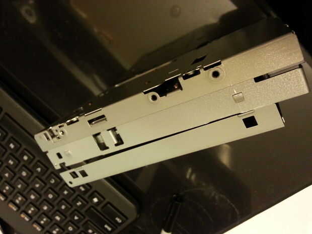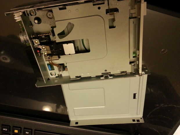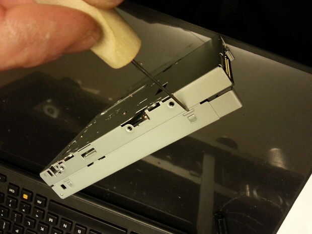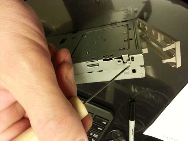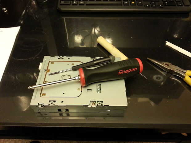 Separar las tapas de metal se hace fácil con la herramienta que postee anteriormente, también puede utilizar cualquier herramienta de curiosos delgado. Una vez que las cubiertas, necesita un #0 destornillador philips y un destornillador #1-2 para exponer el motor paso a paso.