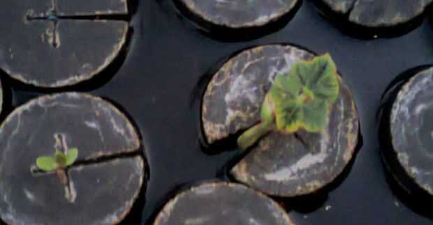 En lugar de una planta de semillero, coloca semillas de lechuga en los collares y colocado directamente sobre el agua en el GLAIRS en un estanque de koi y para nuestra sorpresa y deleite las semillas germinadas.