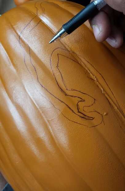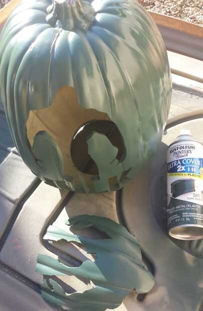 Trace out the HULK pcs. (uno que se cortó de la calabaza de media) en el completo calabaza dibuje otra línea dentro de lo que trazó como 1/4 de pulgada esto es vas a cortar y después de su corta de Hulk de la imagen en la calabaza entonces podía rociar pintado verde y blanco como se muestra en las fotos.