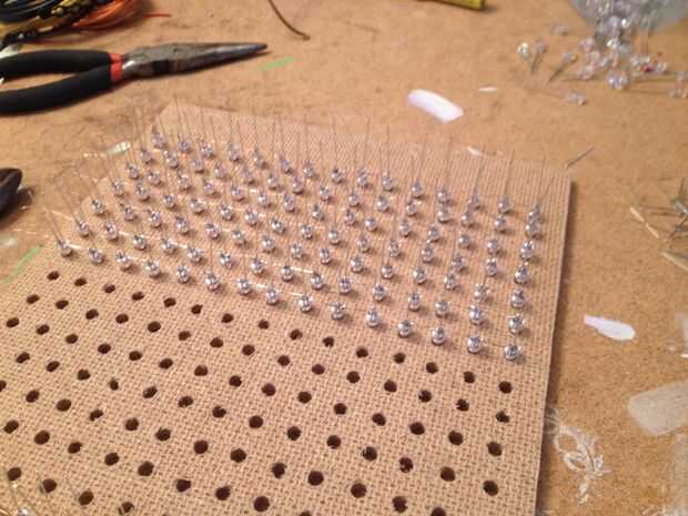 Comience envolviendo el extremo del alambre alrededor de la iniciativa taller (ánodo) en un extremo de la fila. Mientras mantiene el hilo tenso, envuelve una vez alrededor de cada cable en la fila. Deja una longitud de cable 1-2'' colgándose del último LED y luego corte el cable. Nivelar el alambre para que sea unos 3-5mm de la base de los LEDs.