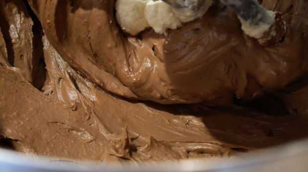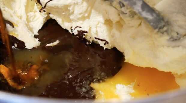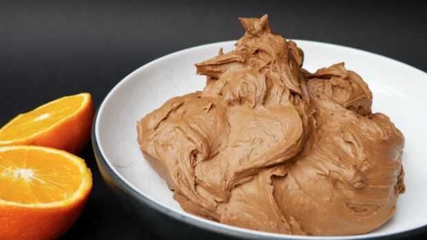 Derretir el chocolate oscuro y dejar enfriar un poco. Batir la mantequilla hasta que se vuelve pálida. Poco a poco añadir el azúcar glas y batir durante 10 minutos hasta que la mezcla se duplica en volumen. Añadir el chocolate derretido, el jugo de naranja, la ralladura y el extracto de vainilla. Terminar agregando la crema de leche y oso 2-4 minutos.
