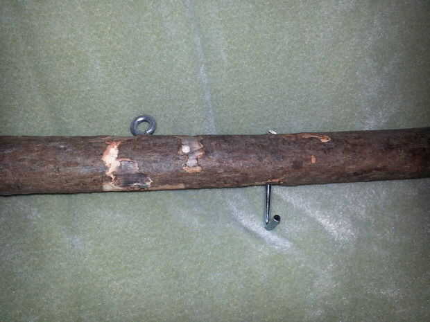 Limar la estaca hasta que quede aproximadamente 2 pulgadas de alto. Después de que termines, martillo en el centro del palo. Se trata de su removedor de clavija de la tienda. A continuación, atornille la armella y limar el extremo por lo que parece en la foto.