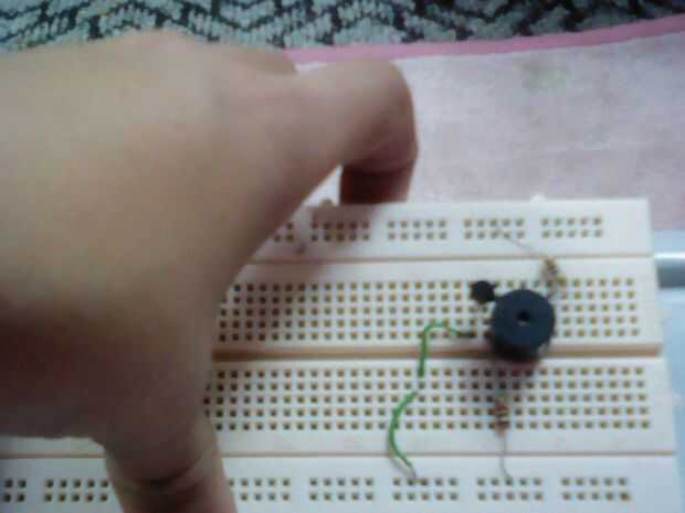 paso 1 piezas1) de la batería y conector2) alambre de3) zumbador4) 5 Led5) 16v condensador6) resistencia 330 ohmAhora puede tomar ayuda con diagrama del circuito si no se puede comprender entonces usted puede preguntarmeMUCHAS GRACIASPaso 1:El borne