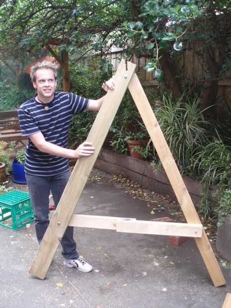 La base se compone de dos armazones, cada 1,85 m de altura, que se inclinan hacia los demás cuando.
