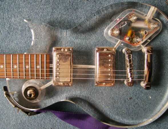 So. Primero pasé algún tiempo trabajando lo que estaba pasando donde y como hacerlo etc etc.. He querido mixtos LEDs de varios colores montados todo la guitarra al principio, pero no quería que los antiestéticos cables por todas partes, además de eso, diferentes especificaciones LEDs pueden ser problemática cuando los cables hasta con limitación de resistores en paralelo y eso malarkey... La mejor solución que consideré era montar LEDS muy brillantes en aproximadamente las cuatro esquinas, y ángulo en el cuerpo de la guitarra para los efectos de refracción impresionante.