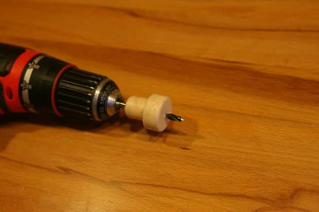 El primer paso fue perforar el corcho con un taladro de montaje. Me aseguró el corcho con las pinzas y había perforado longitudinalmente.