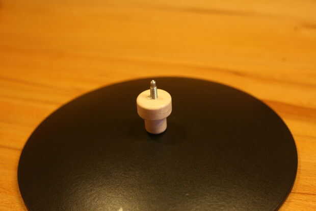 Después de eso vino la prueba de ajuste de puño. Puse el tornillo a través del agujero en la tapa y había pegado al corcho en la parte superior. El perno que utilicé era un poco demasiado largo, así que sólo había acortado lo un poco con mi dremel en el paso siguiente.