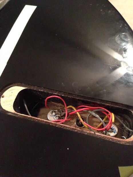 este es el protector de pick de mi último proyecto, la guitarra de patín. Pronto se va en la guitarra de la plantilla de tela.Para este proyecto, estoy convirtiendo una guitarra dos humbucker volumen y un tono en uno que tiene un volumen para cada pa