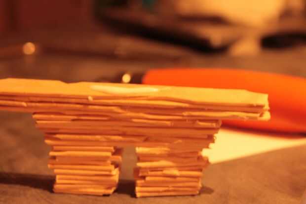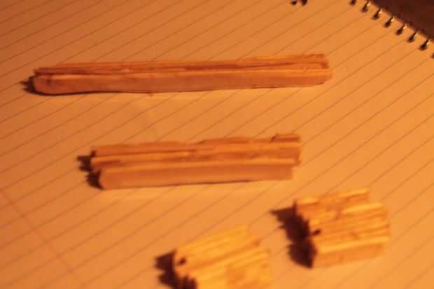 El siguiente paso fue construir y añadir los brazos. Como las piezas hasta el momento, utilicé el mismo método a cortar a pedacitos los palillos individuales para dar un acabado áspero.
