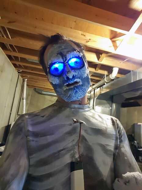 La parte más difícil de este traje fue después de muchos ensayos y errores finalmente recibiendo los ojos con un resplandor azul constante sin dejar de tener buena visibilidad. Para ello utilicé dos separadores de plástico transparente de mi caja de trastos viejos y cortarlas en la forma que necesitaba para compensar un poco de la parte inferior de los zócalos del ojo para dar espacio para la light a aluminato de toda el área del ojo. Cuando llegué la forma marcada en entonces lija en húmedo la lente para ser muy transparente para que la luz se extendería a lo largo de la lente todo opuesta a donde decidí ubicar el LED azul. Esto funcionó muy bien e hizo el resplandor mucho más aún. Todavía sabía que esto sería difícil de ver con mis ojos, encerrados en una caja de luz azul así que conseguí un par de azul gafas de cama de bronceado. Con estos apareció el lente oscuro hacia fuera y luego utilizar mis herramientas dremel para cortar la parte superior de las gafas a darme la altura que necesitaba sentarse a ras en el agujero que se taladró en la lente. El resto de los anteojos que se sentó cerca de alrededor de mi ojo creando un escudo de los LEDs brillantes.
