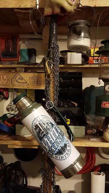 Me encontré con un logo de "White Walker invierno Ale" en línea que pensé que era perfecto para imprimir y cinta para mi termo. Esto también colgada de un gancho en mi lanza así que mi "bebidas adultas" eran cercanos y siempre frío.