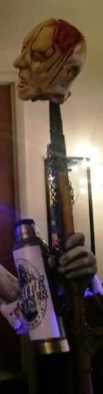 Para mi propuesta he utilizado mi vieja lanza de pesca que hice cuando era joven y pegado a una cabeza cortada en la parte superior. Entonces atornillar pernos en lugares al azar así que vagamente podía cuelgo el resto de la cadena tenía dándole un aspecto fantasmagórico a lo largo de