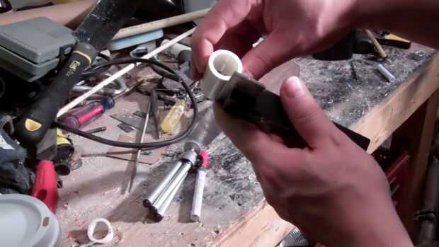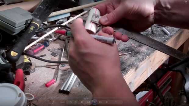 • Poner el PVC en un vicio y ajustados para arriba pero no de la manivela hacia abajo en él. Queremos firmemente bastante para sostener el PVC al cortarlo y no más