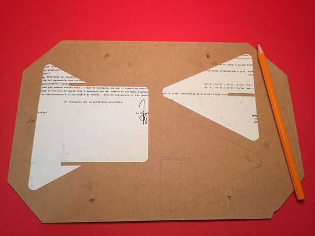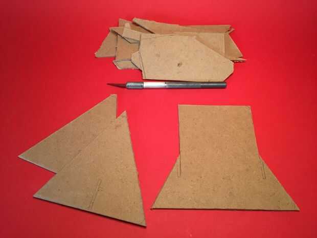 Imprime la plantilla (o dibujar), cortar 2 piezas y marque una línea alrededor de los bordes (una vez para el más grande y dos veces para la pieza de triángulo).