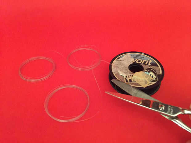 Cortar 3 trozos de hilo de pescar largo 2m.