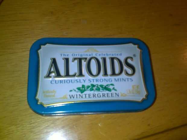 como un artista gráfico, me gusta almacenar hojas extra x-acto en un contenedor de acero para seguridad. Contenedores de Altoids son los mejores... pero entonces ¿qué hacer con los Altoids?Paso 1: necesitarás: Cuchillo x-actoAltoidsshuffle muertopinz