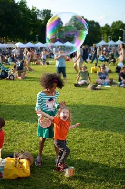 Las personas responden a las burbujas gigantes en maneras maravillosas. Remolino con los colores, brillantes y flotantes, burbujas revelan un microcosmos del mundo circundante reflexionado en sus superficies. Cuando burbujas más grandes doblan twist, golpeado por los remolinos, distorsionan en extraordinariamente interesantes maneras demasiado y puede ser pensado como airborn, irridescent, morphing espejos de la casa de la diversión. Las personas son encantada e inspirada por burbujas gigantes como nada más. Como luz e insustanciales como pueden ser, materialmente, burbujas de jabón grandes llevan una carga impresionante de inspiración, belleza y maravilla.