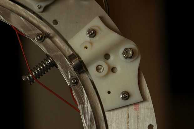 Para asegurar que el cable no deslizarse, envuelve el cable dos veces alrededor de la polea de impulsión del motor y dos veces alrededor de rotor de iris. Los extremos libres del cable fueron entonces anclados al rotor iris por sargentos. Usé un resorte presiona lateralmente en el cable, hacia el interior, cualquier tensar y mantener la tensión del cable.