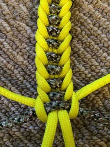 Cómo hacer un brazalete de Paracord King Cobra. La primera parte es igual a la pulsera del Paracord de Cobra, pero utiliza unos 18 pies de Paracord. Haga clic en instrucciones de la pulsera del Paracord y hacerlas primero pero no cortan el paracord.
