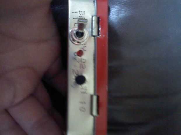 bien, ahora tome el taladro y perforar un asimiento de 3-4mm en el centro de la tapa en la lata del lado más corto de la tapa de la lata. Luego tomar su emisión de TV y coloque una gota de pegamento caliente en la parte posterior de la misma y poner el led hasta el agujero, debe no ir muy lejos a través de y pegarlo en el interior de la tapa hacia abajo. Luego en el lado de la lata con las bisagras perfore un orificio de unos 5 mm de ancho para su conmutador, asegúrese de que está cerca de 1