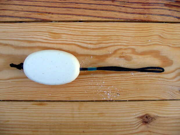 * Empuje el jabón hasta el extremo de la cuerda hasta que asiente firmemente en el nudo.