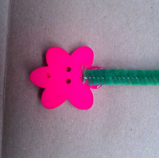 Coloque una gota de pegamento caliente en el botón y colocar el vástago. Una vez más, ser consciente de la dirección de los agujeros de botón.