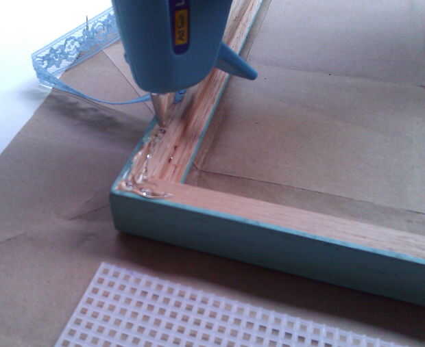 Colocar una cantidad generosa de pegamento caliente en el marco.