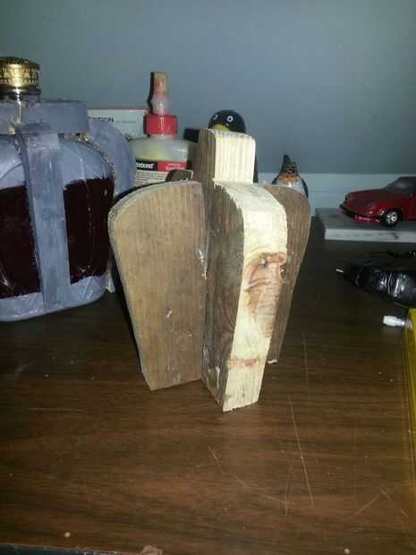 luego hice el que hice con 1 × 6 y una sierra de calar para cortar las botellas. Entonces hice uno de una botella de real corona una madera. Luego pongo pegar en él. o se puede poner agua de color rojo