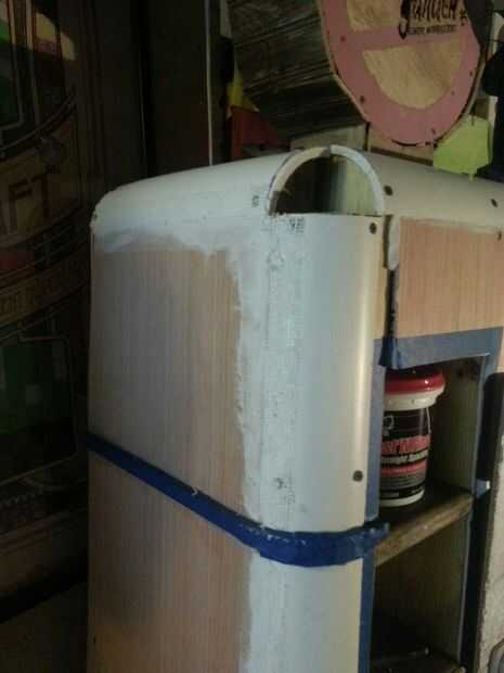 he utilizado tubo de pvc en las esquinas a redondo hacia fuera. Corté el tubo de pvc en 4 partes. Luego puse cinta de paneles de yeso en los lados para llenar los boquetes así que puedo poner masilla en él y rellene las grietas