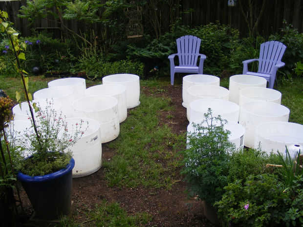 En primer lugar tomamos en consideración la cantidad de espacio que tenía antes de cortar todo en medio y medido para que tipo de tenían una idea de la cantidad cuadrada, estadio de béisbol funciona muy bien en este momento. Terminamos necesitando utilizar 8 tambores (16 mitad tambor contenedores) para este jardín.
