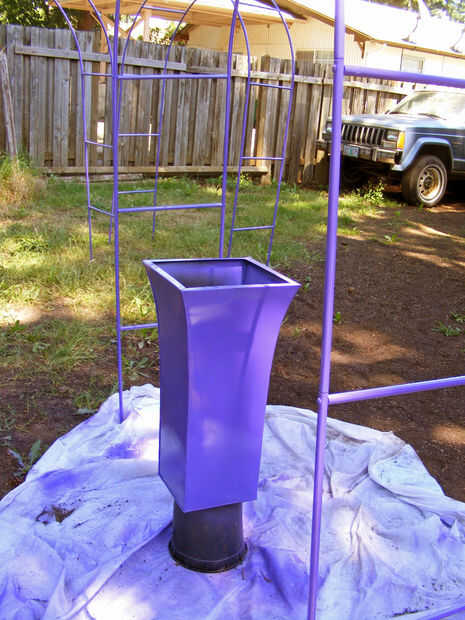 Si usted está inseguro acerca de todo este material de color solo recuerda, es sólo pintura y metal y cosas de plástico son fáciles de pintar otra vez a un bajo costo. Cuando vaya a pintar Asegúrese de que son lavados limpios de escombros y trozos sueltos de pintura y van por ella! Es una pintura en aerosol y usted puede pintar un color diferente si uno no funciona. El envase morado es en realidad un contenedor de metal fue un plantador de la decoración interior del hogar en su anterior vida que recogí por unos dólares en una venta de yarda (puntuación!). Ser creativo, ser valiente, es increíble!