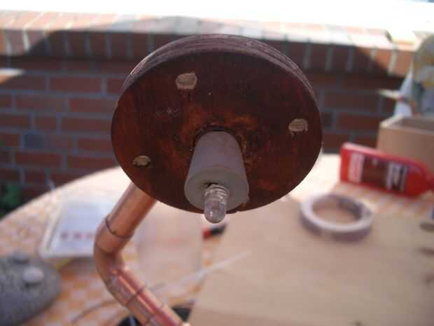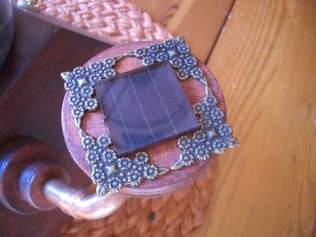 De un pequeño trozo redondo de madera y algunas aplicaciones del latón, he creado un soporte para el panel solar.